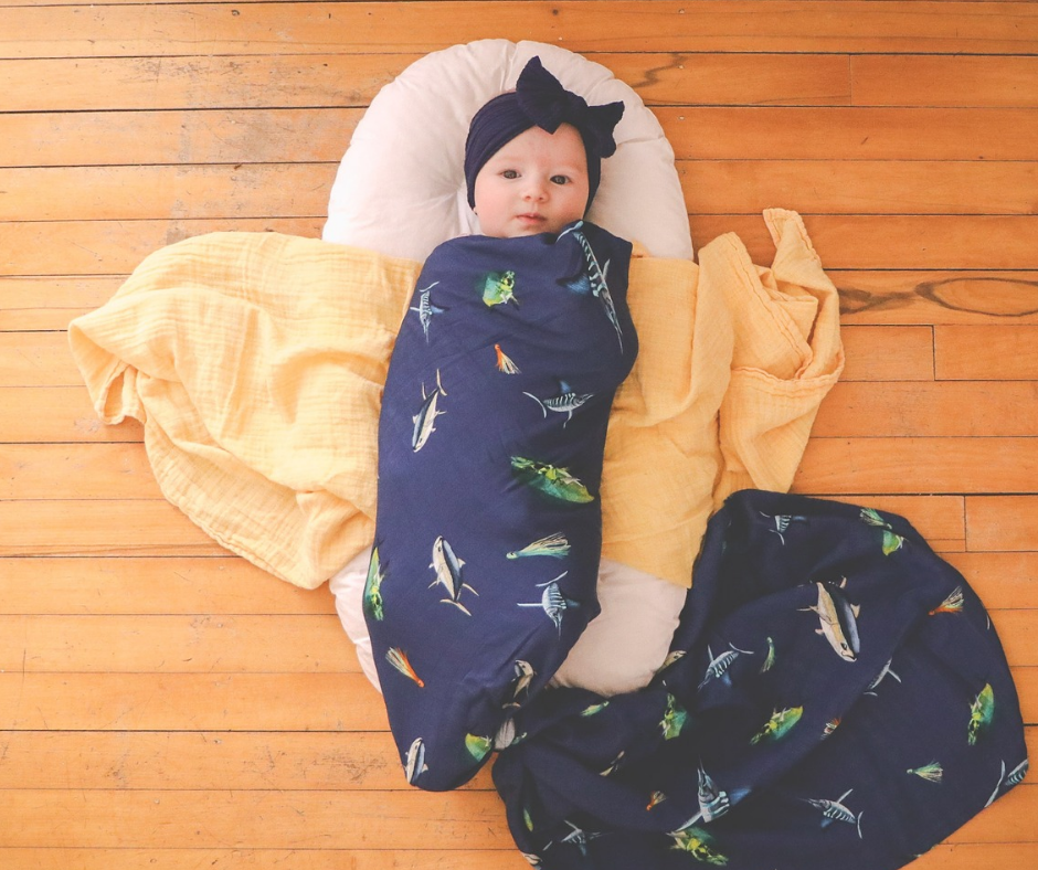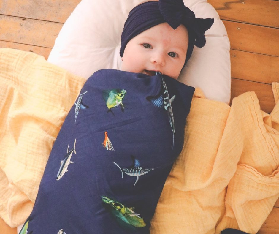 Big Game Fishing - Muslin Swaddle Wrap - Deep Sea Blue