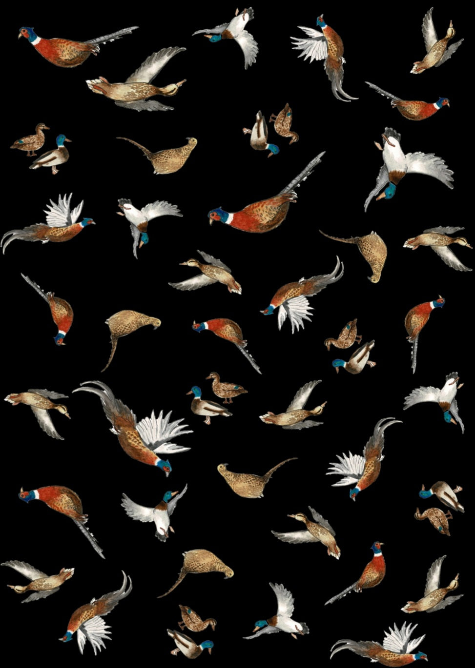 Pheasant & Duck Multi Print NZ Tea Towel- Black