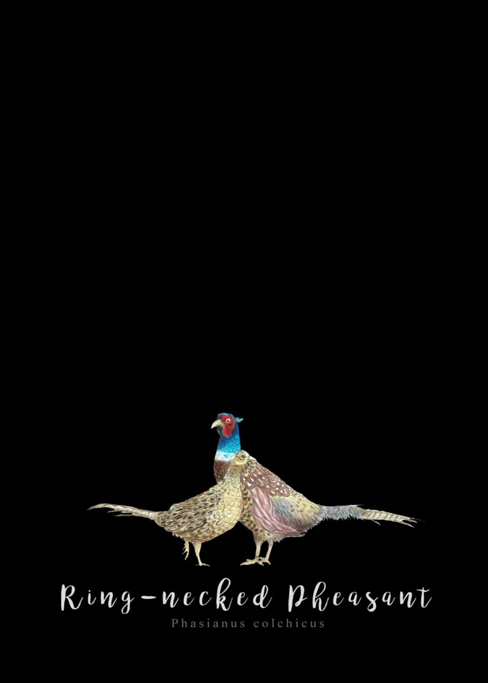 This gorgeous Fine Art print on black Tea Towel features a pair of beautiful Ring-necked Pheasants.