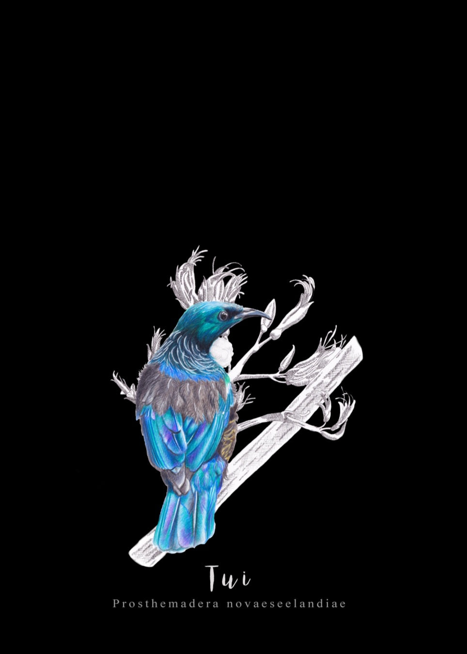 This gorgeous Tui fine art print on black Tea Towel features artwork by New Zealand Artist - Sally's Artistry.