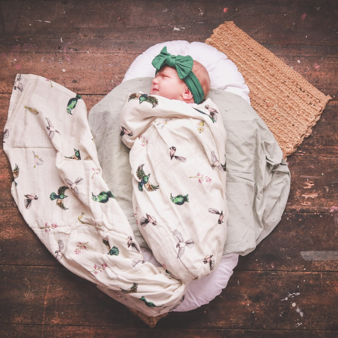 Native Birds - Bamboo Muslin Wrap - Cream
