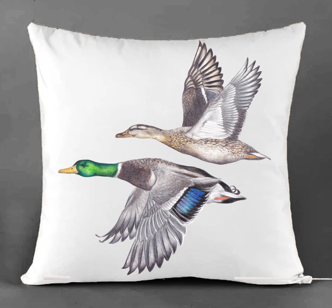 The Duck cushion cover features a brightly coloured hand drawn pair of Mallards which would look regal in any home.