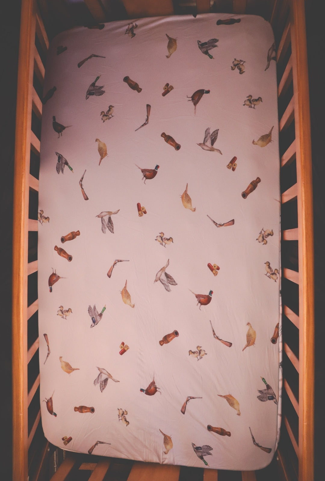 Duck Shooting - Bamboo Fitted Cot Sheet - White