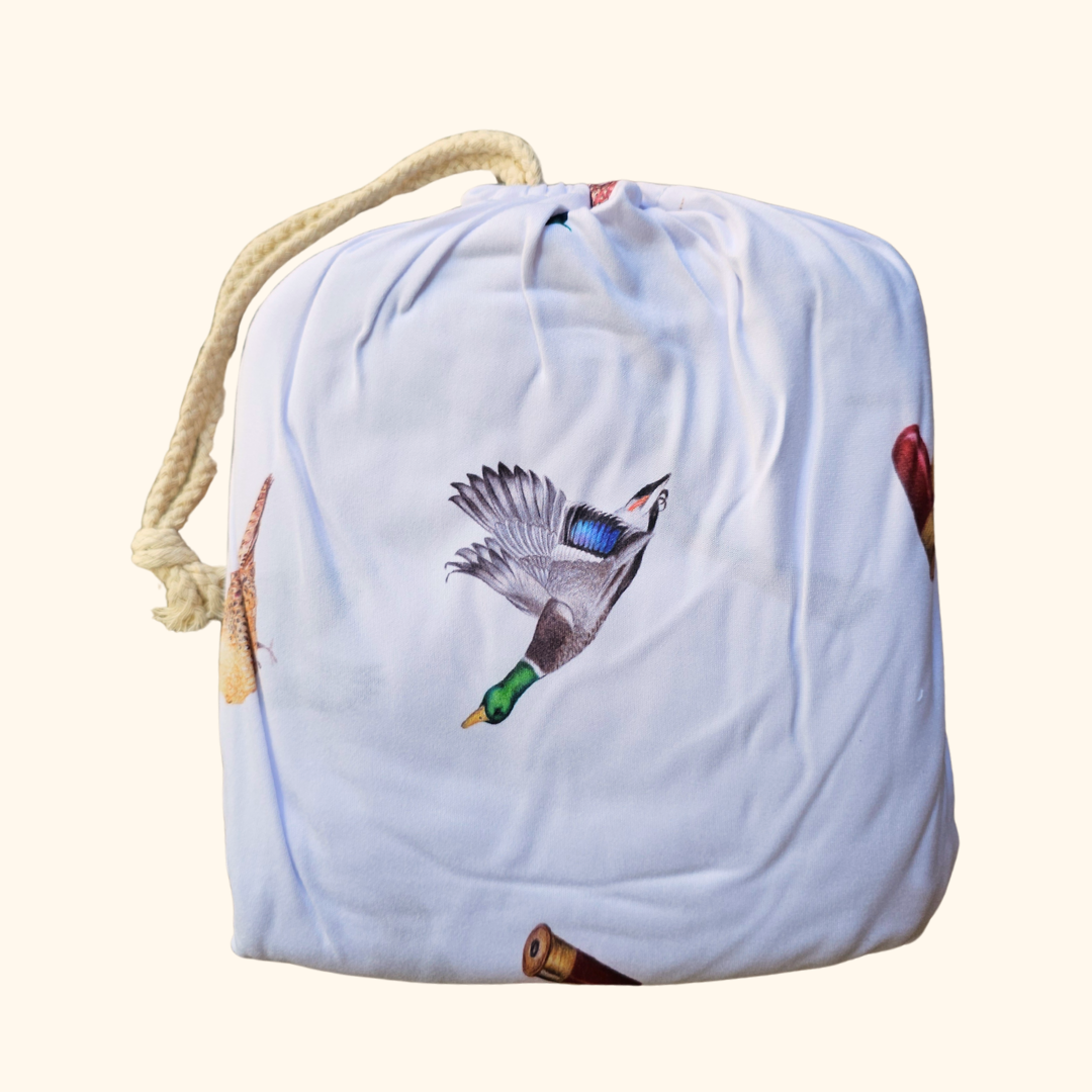 This fitted sheet features our Duck Shooters design and comes in a matching drawstring bag.