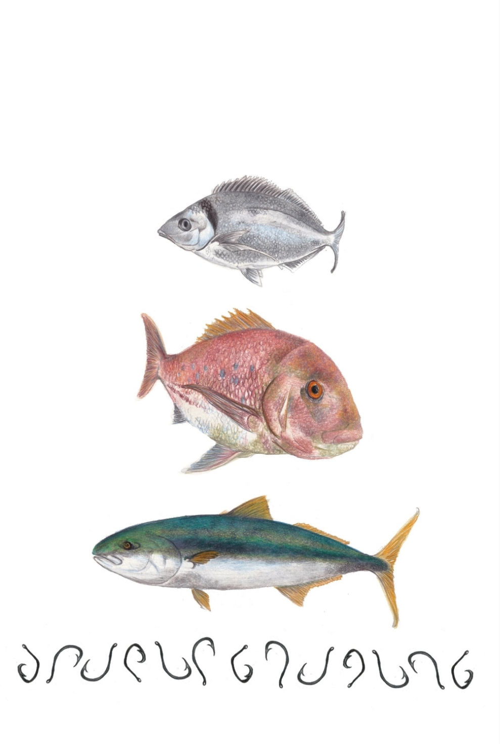 The Trio of Fish features a classic selection of fish with a Terakihi, a Snapper and a King fish common in NZ waters