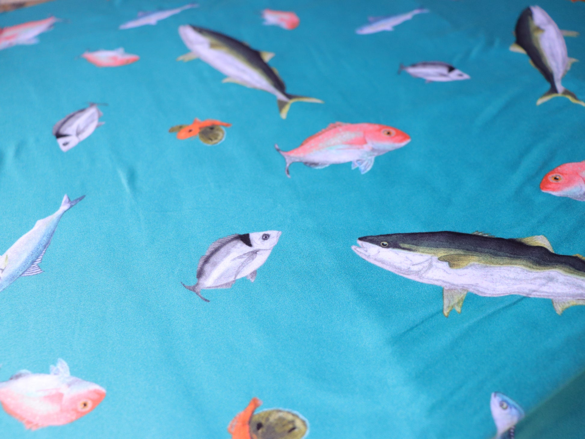 This fitted sheet features digital drawings of popular species of fish that kiwis love to catch, with a snapper, gurnard, kahawai, Terakihi and Kingfish featuring on a bold sea green colour and comes in a matching drawstring bag.