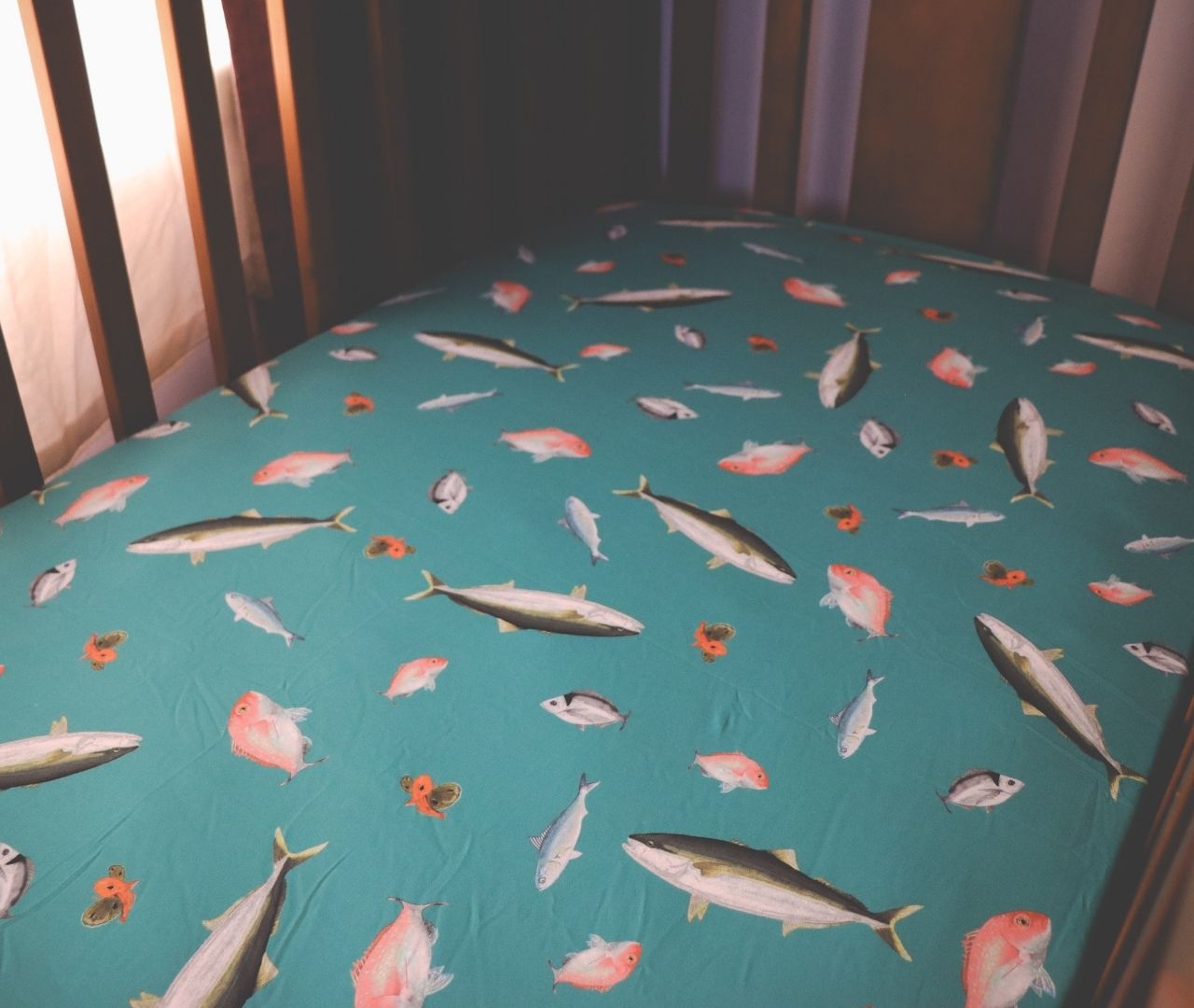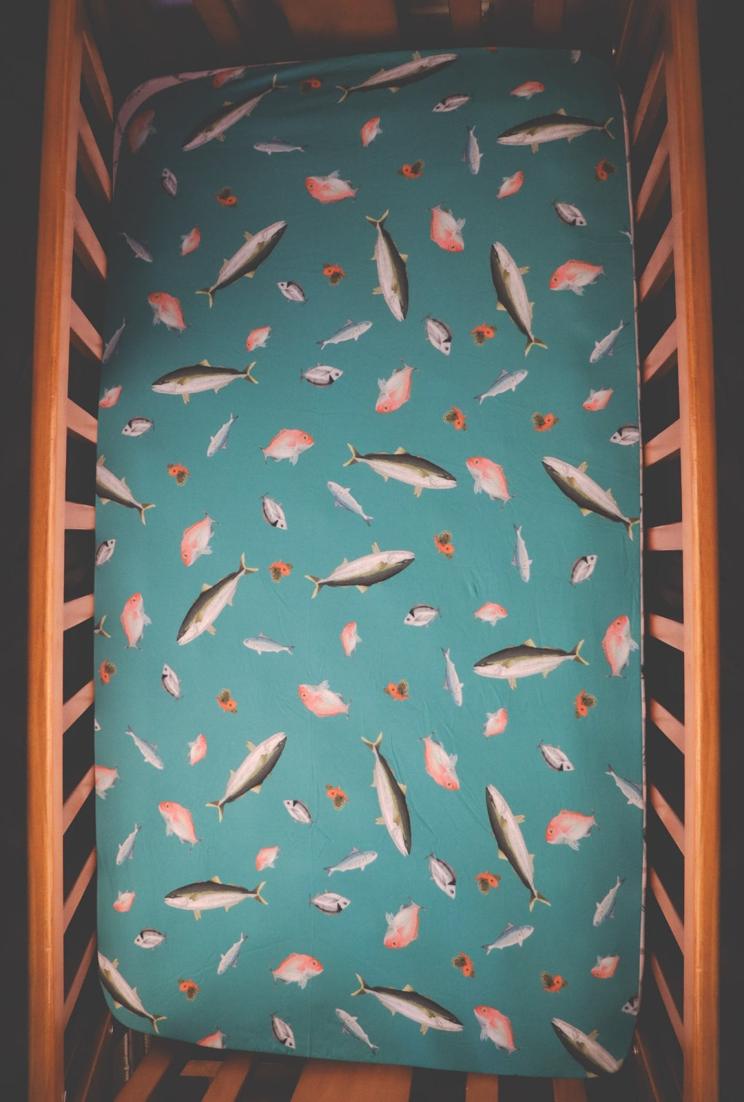 Fishing NZ - Bamboo Fitted Cot Sheet - Sea Green