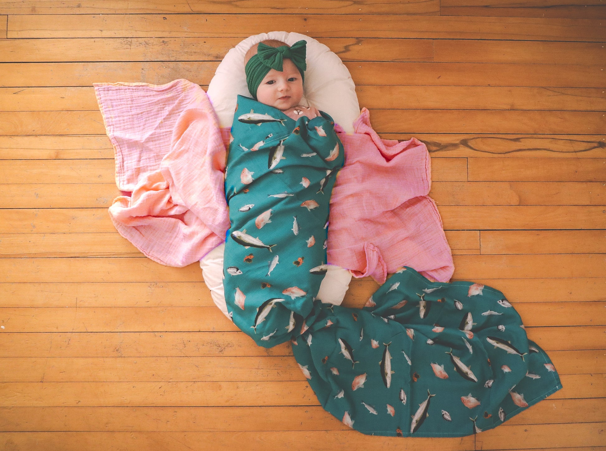 Fishing NZ - Muslin Swaddle Wrap - Sea Green