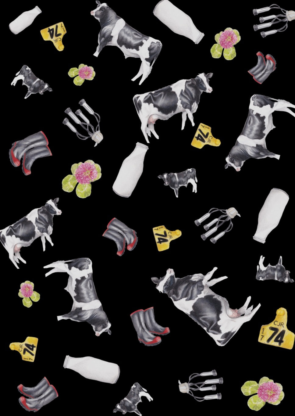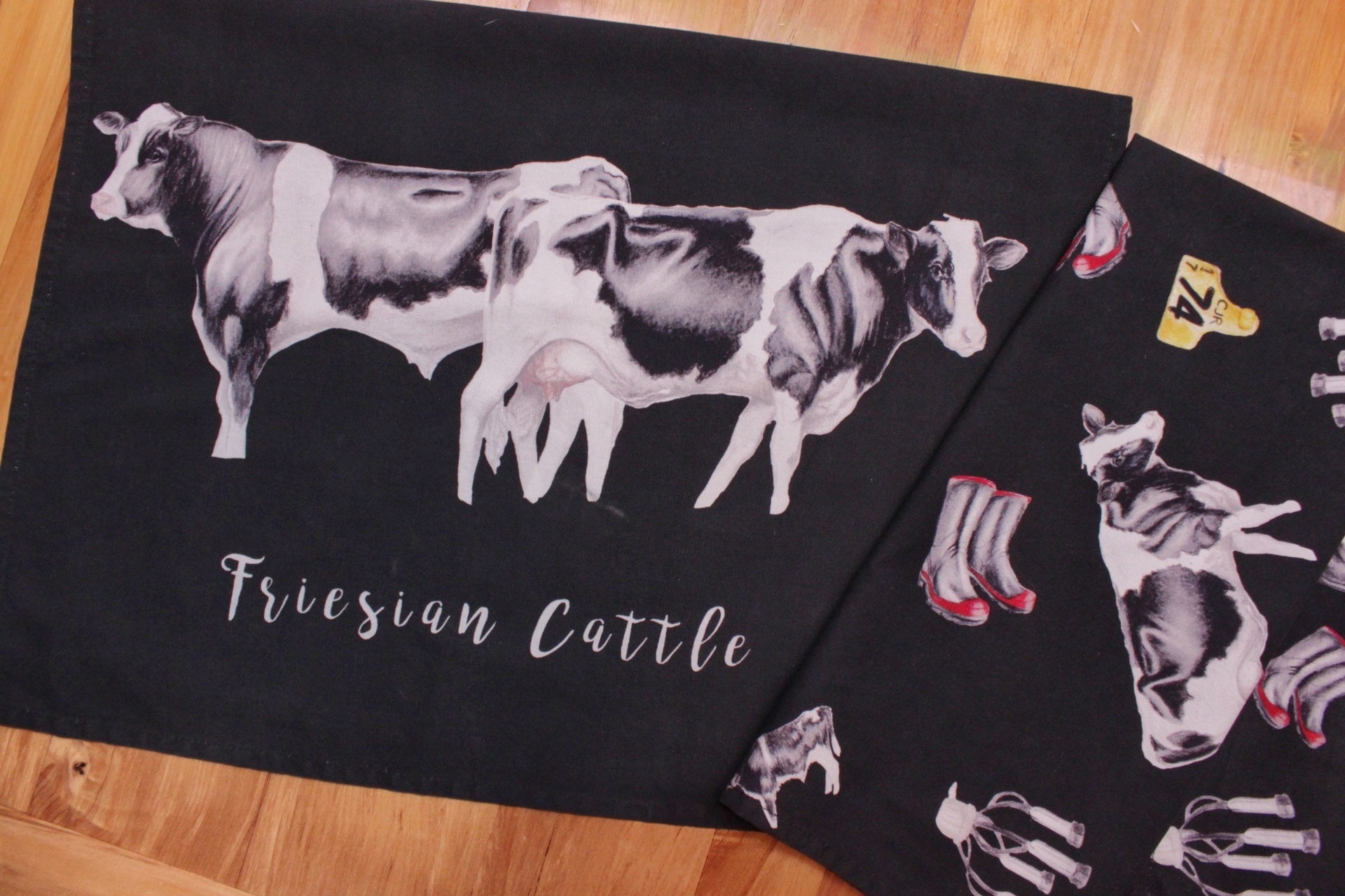 Friesian Cattle Multi Print NZ Tea Towel -Black