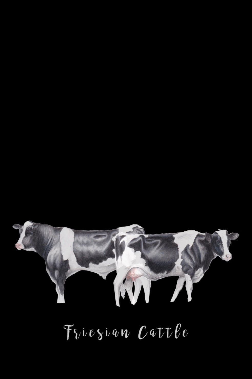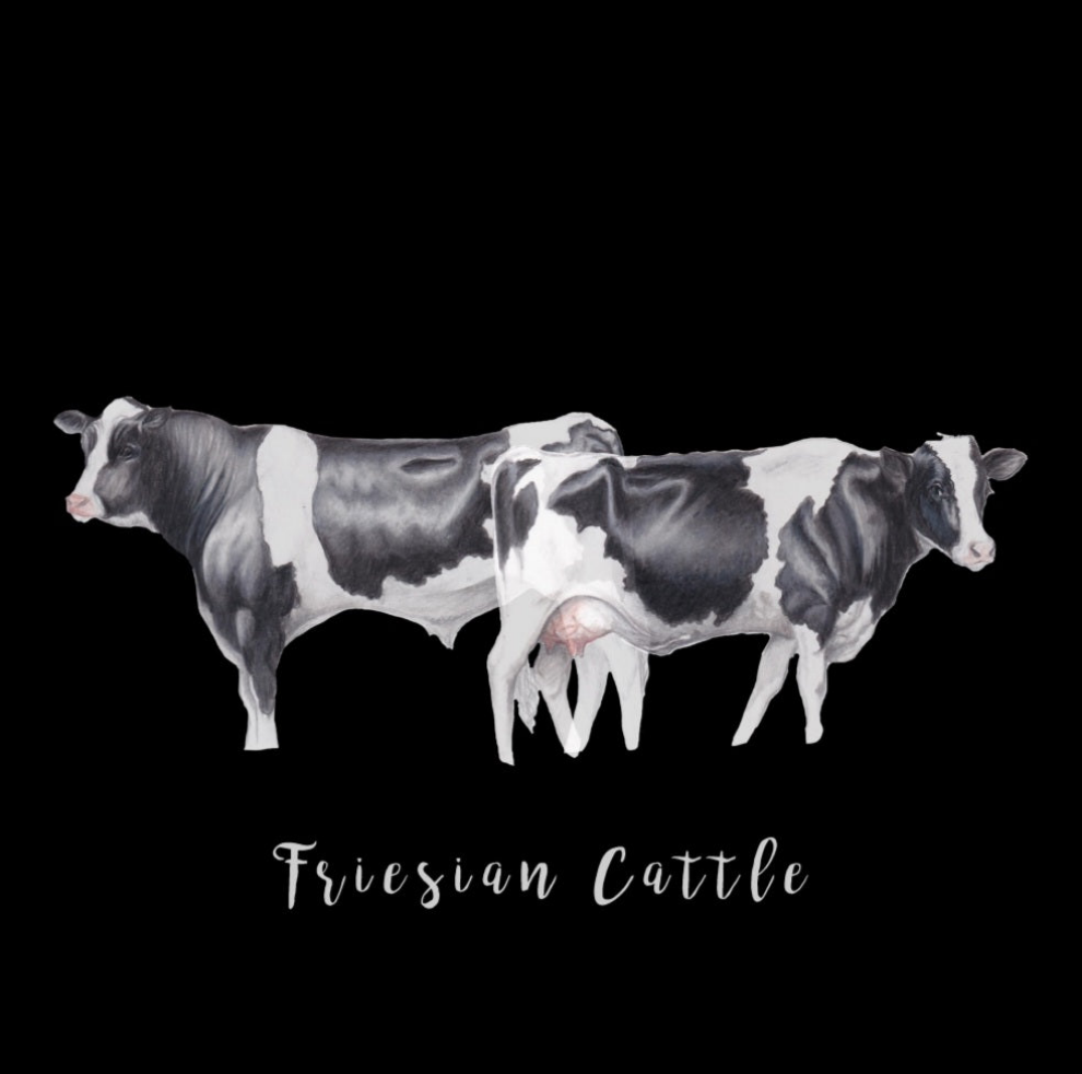 Friesian Cattle Fine Art NZ Tea Towel - Black