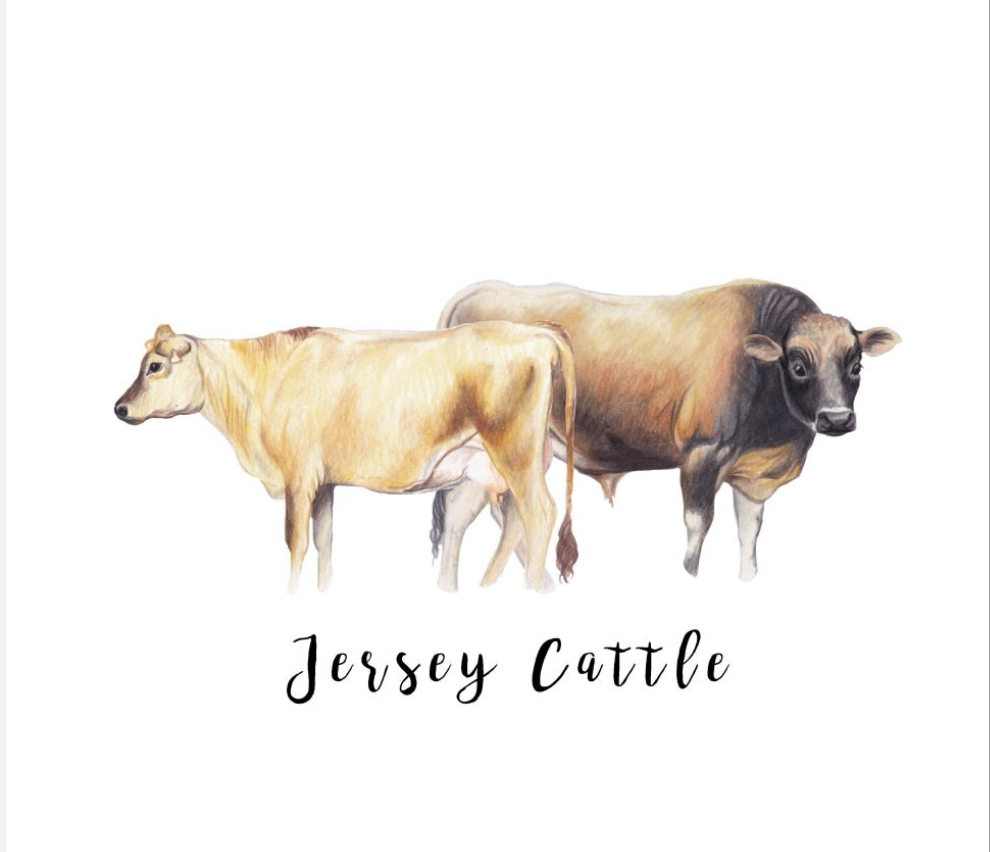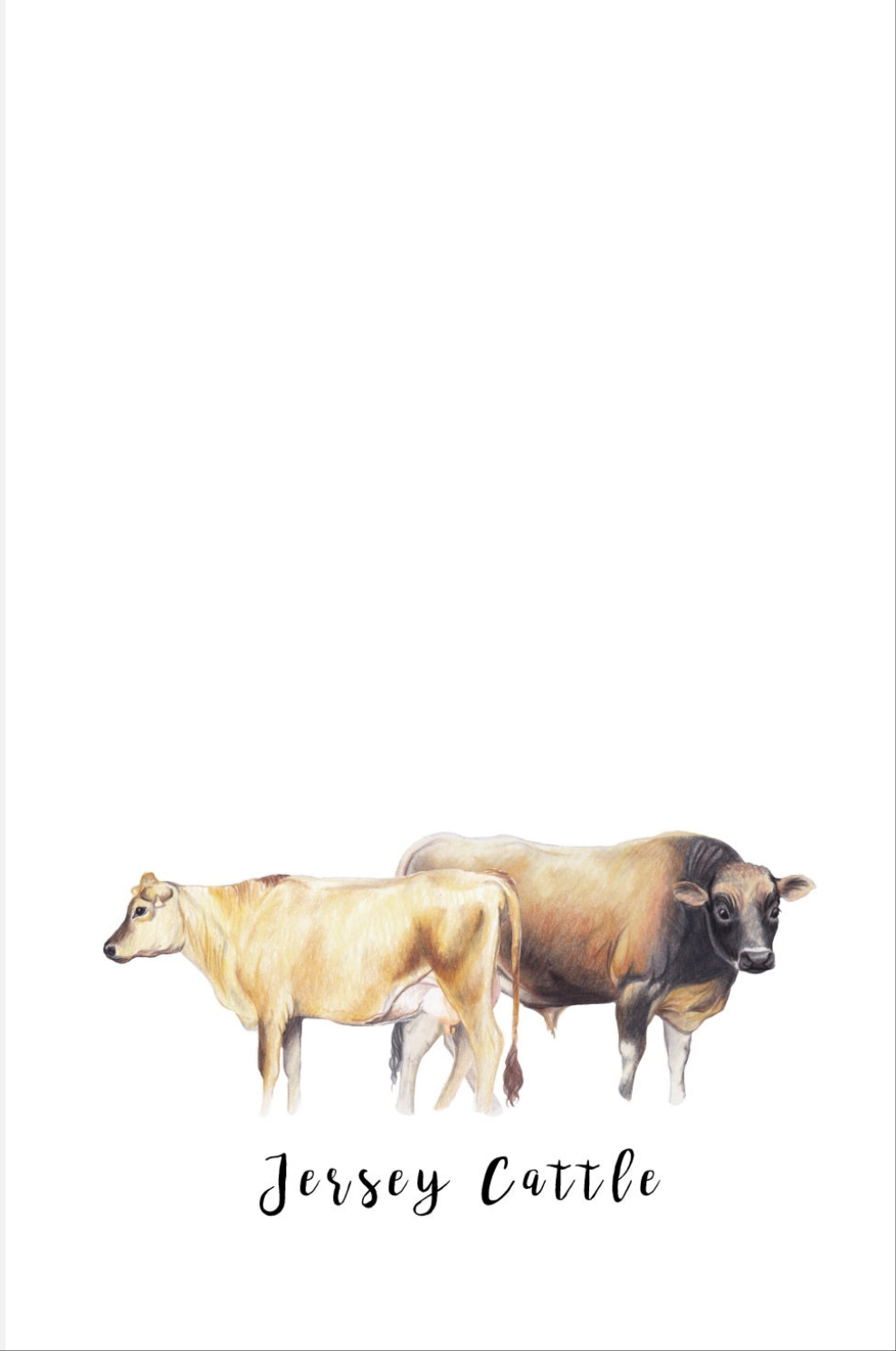 Jersey Cattle Fine Art NZ Tea Towel - White