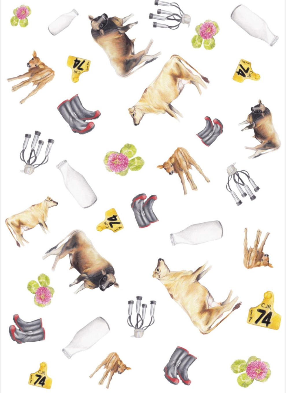 Jersey Cattle Multi Print NZ Tea Towel - White