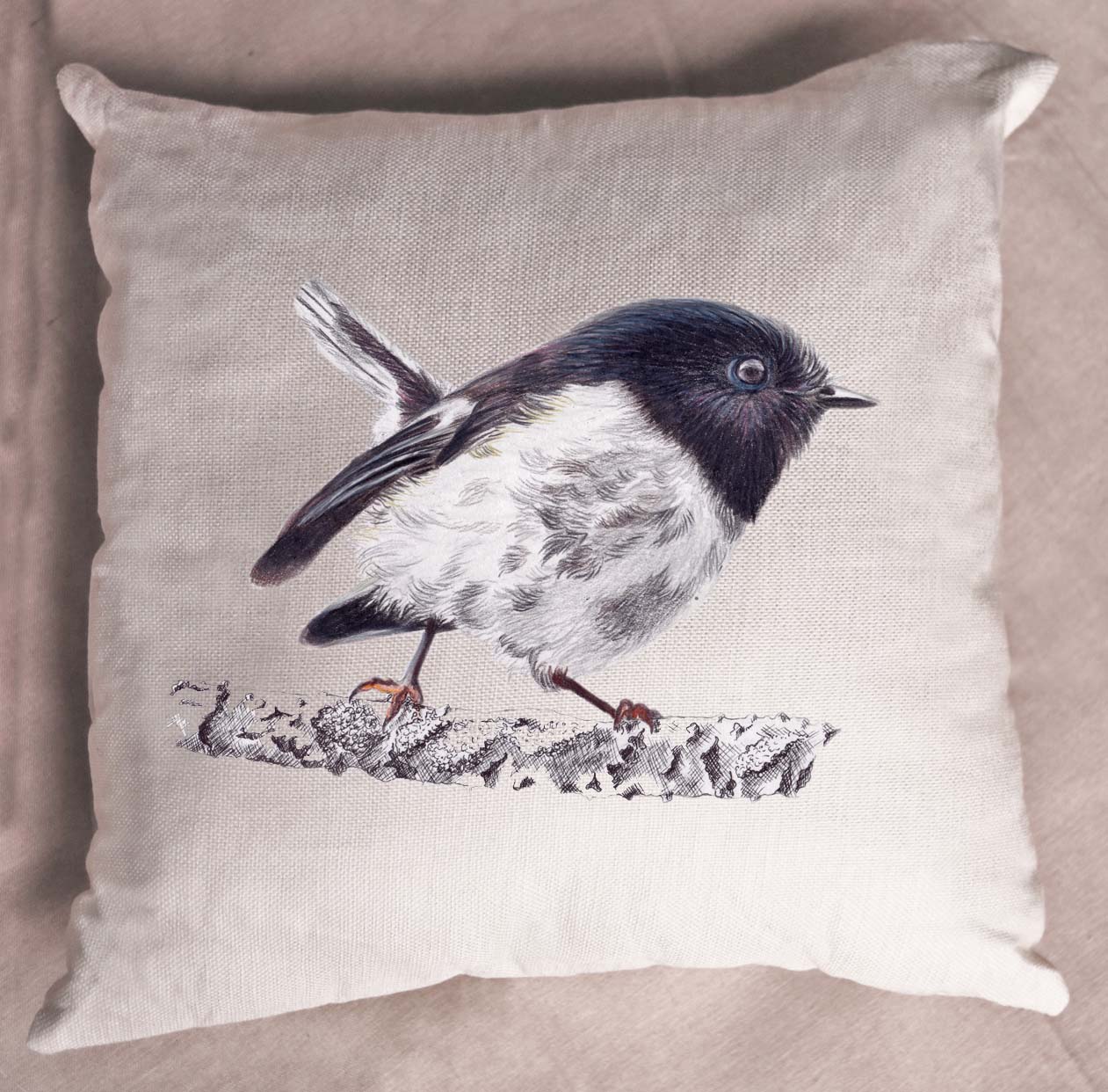 This gorgeous Tomtit fine art print Linen cushion cover features artwork by New Zealand Artist - Sally's Artistry.
