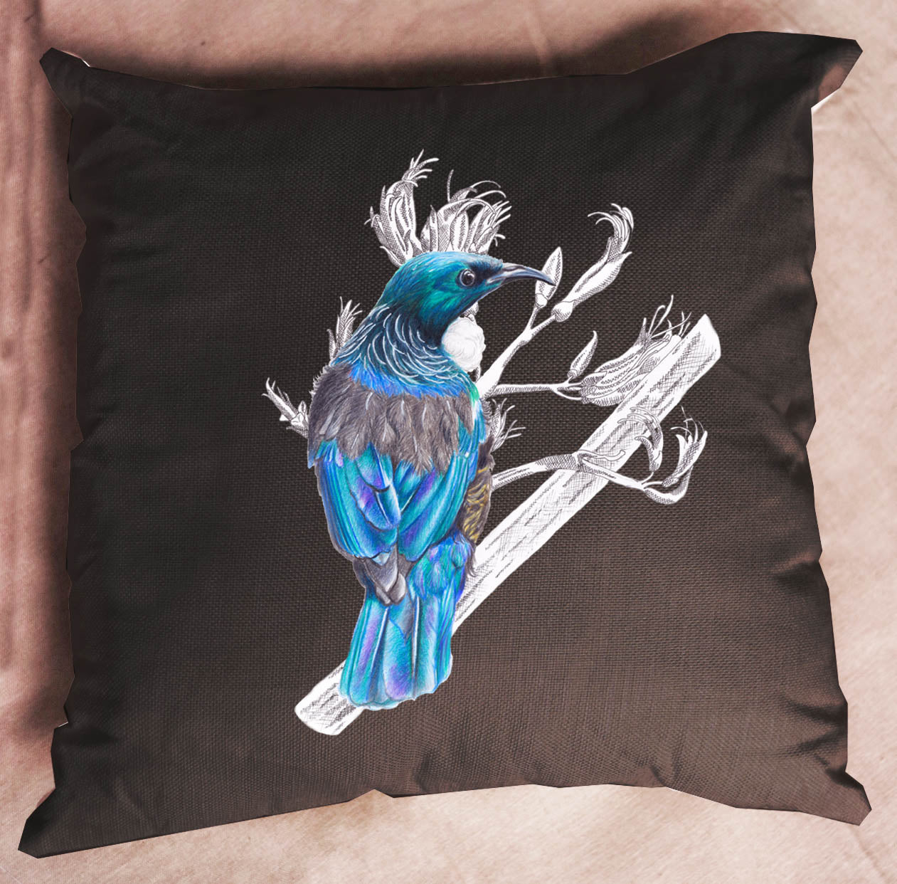 This gorgeous Tui fine art print Linen cushion cover features artwork by New Zealand Artist - Sally's Artistry.