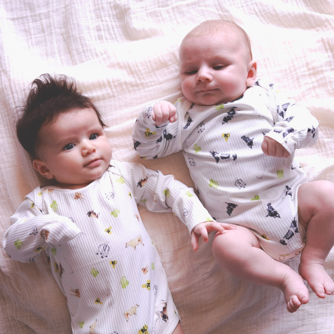 Featuring an envelope neckline and dome snaps for quick and easy nappy changes and unisex in design means these are perfect for all the Little Farmers.