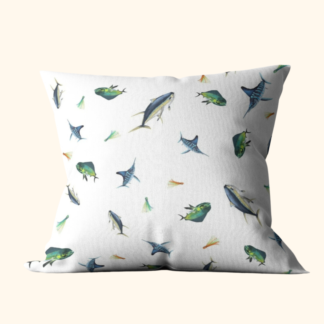 The Fishing multi pattern cushion cover features a collection of popular Large game fish which would look fantastic on any enthusiast's boat.