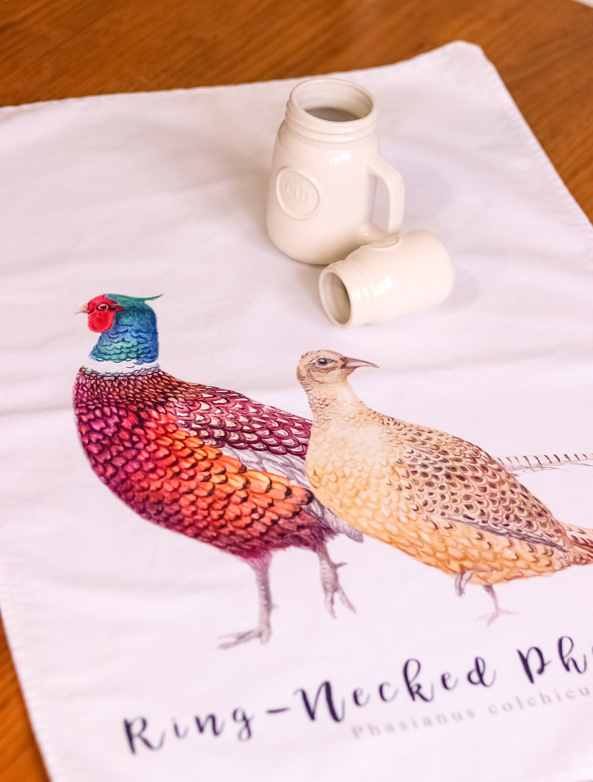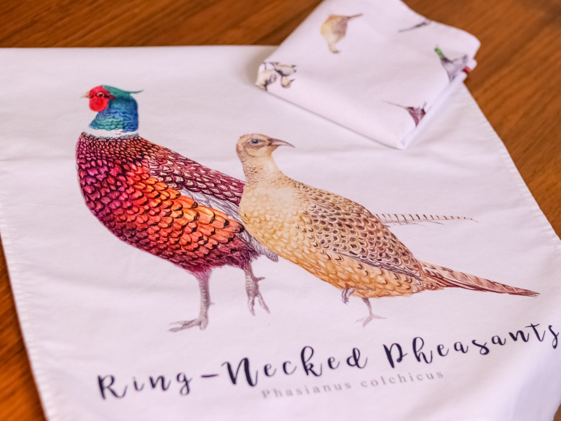 Pair of Ring-Necked Pheasants NZ Tea Towel - White
