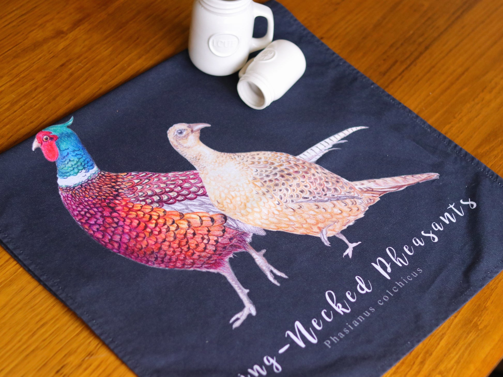 Pair of Ring-Necked Pheasants NZ Tea Towel - Black