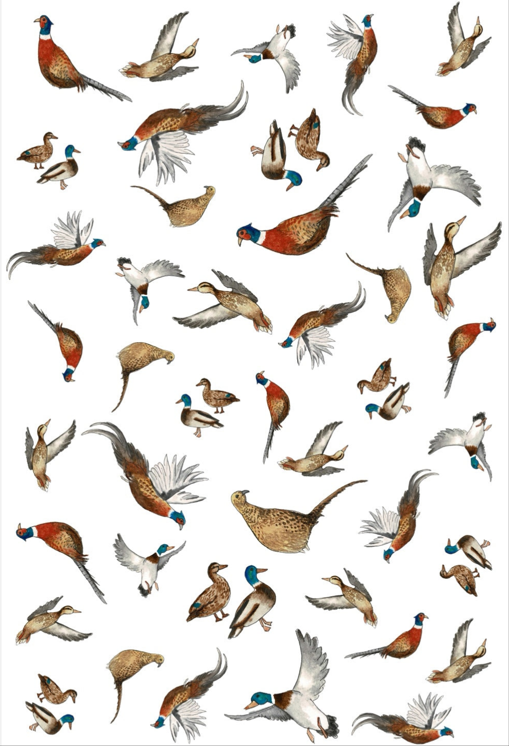 Pheasant & Duck Multi Print NZ Tea Towel - White