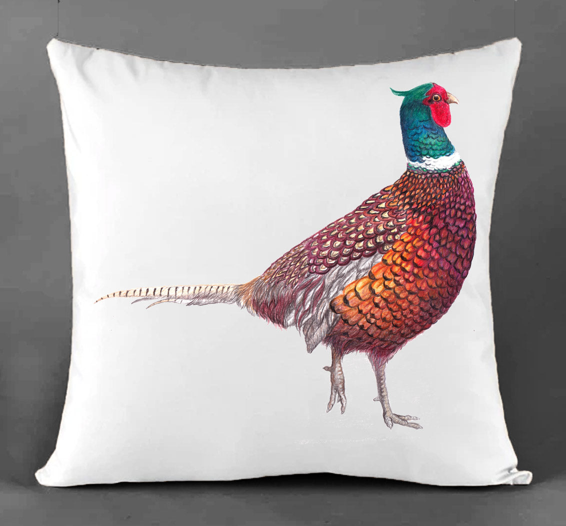 The Pheasant cushion cover features a brightly coloured hand drawn pheasant which would look regal in any home.