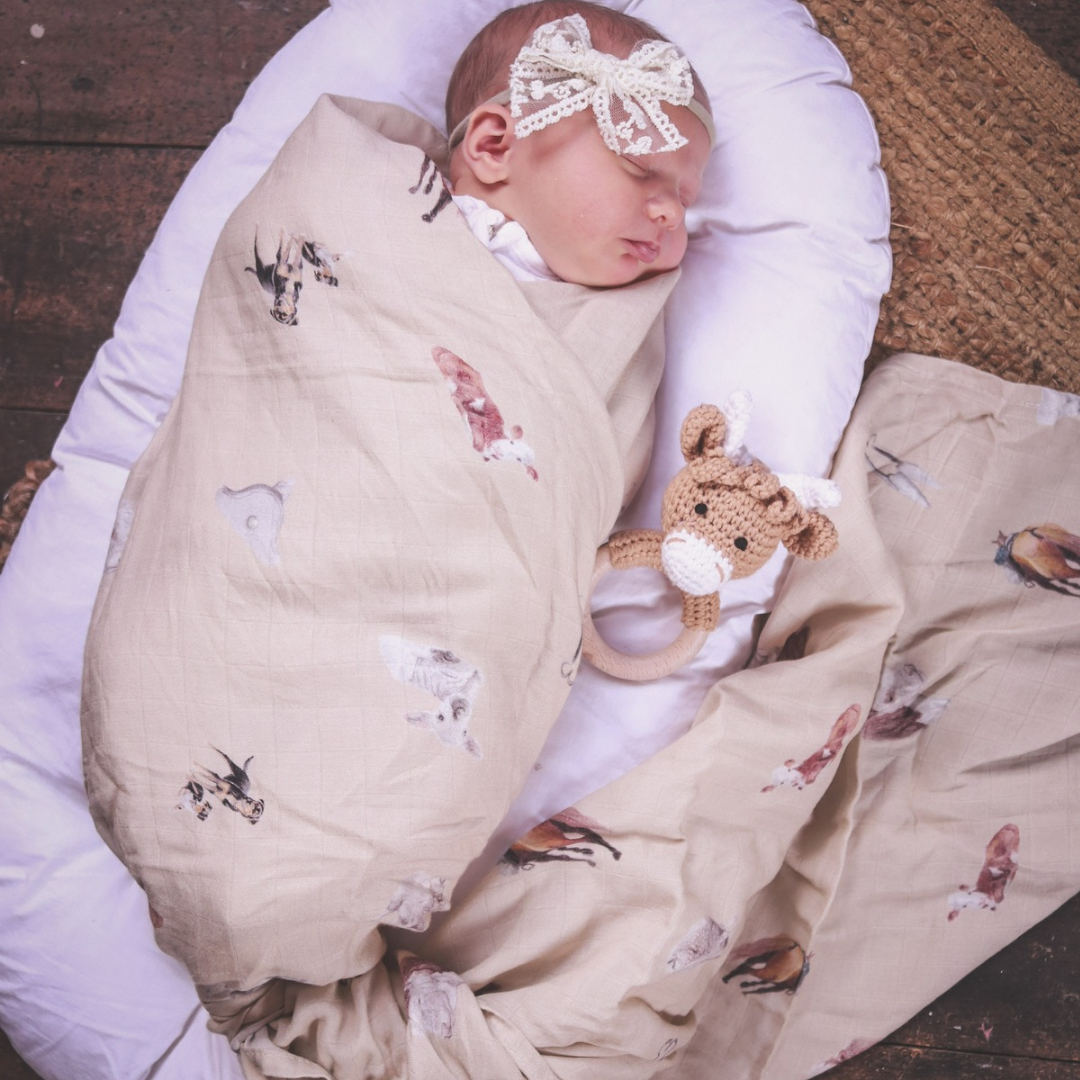 Sheep & Beef Multi - Bamboo Muslin Wrap - Cream