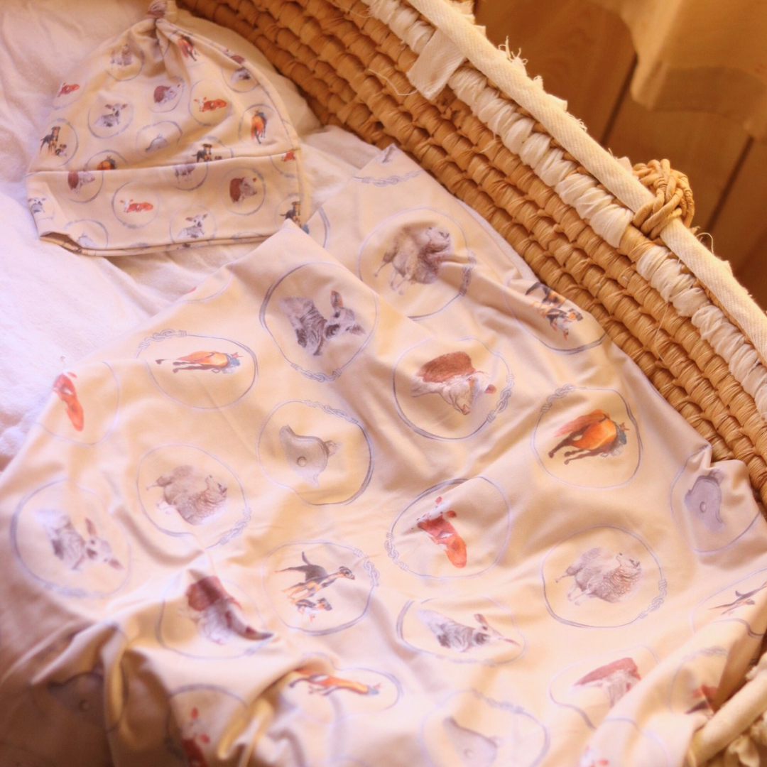 Sheep & Beef No8 Wire - Bamboo Swaddle Wrap + Beanie - Cream