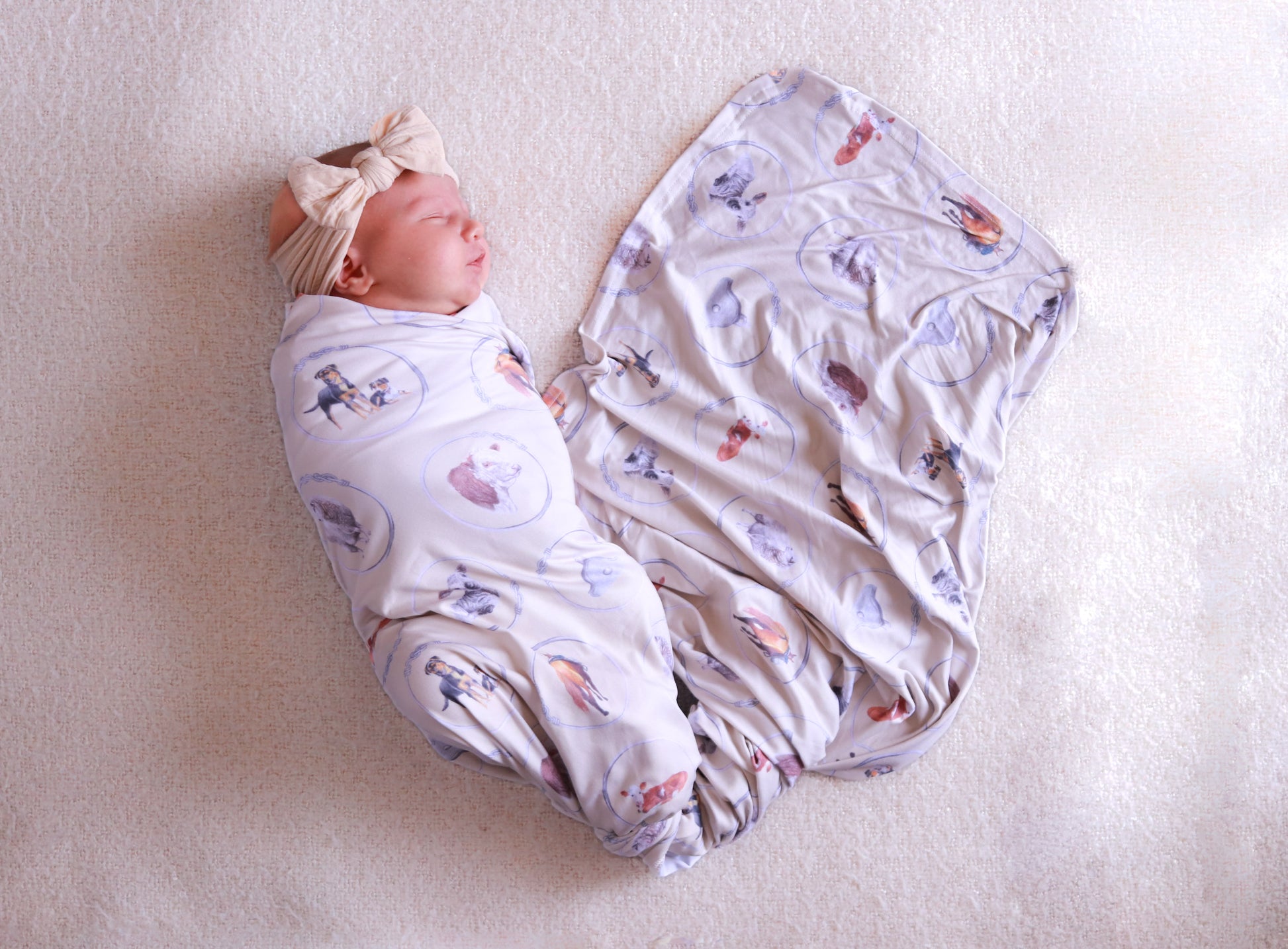 Little Fallow's Bamboo Swaddle Wrap and Beanie set is the perfect gift.