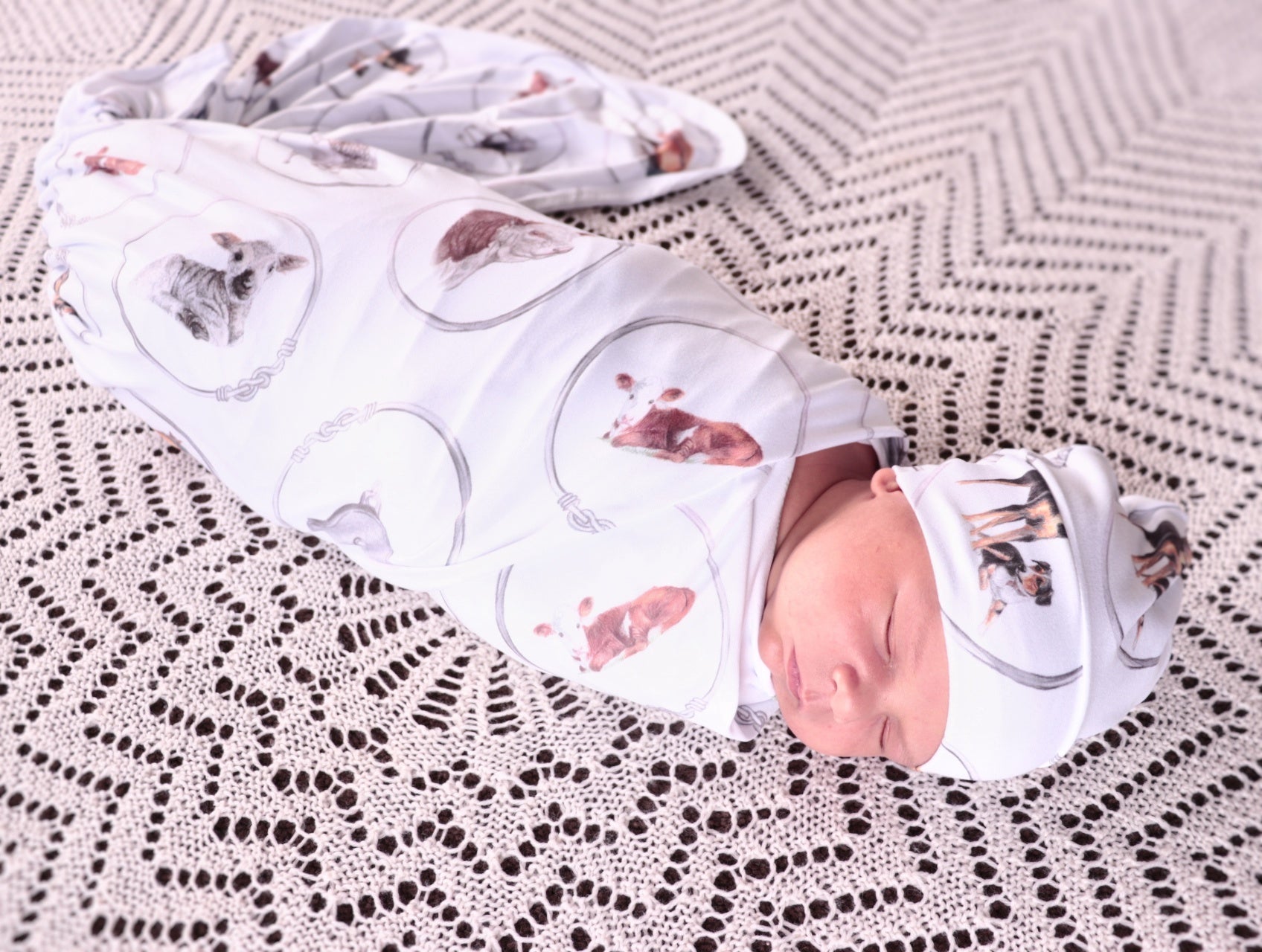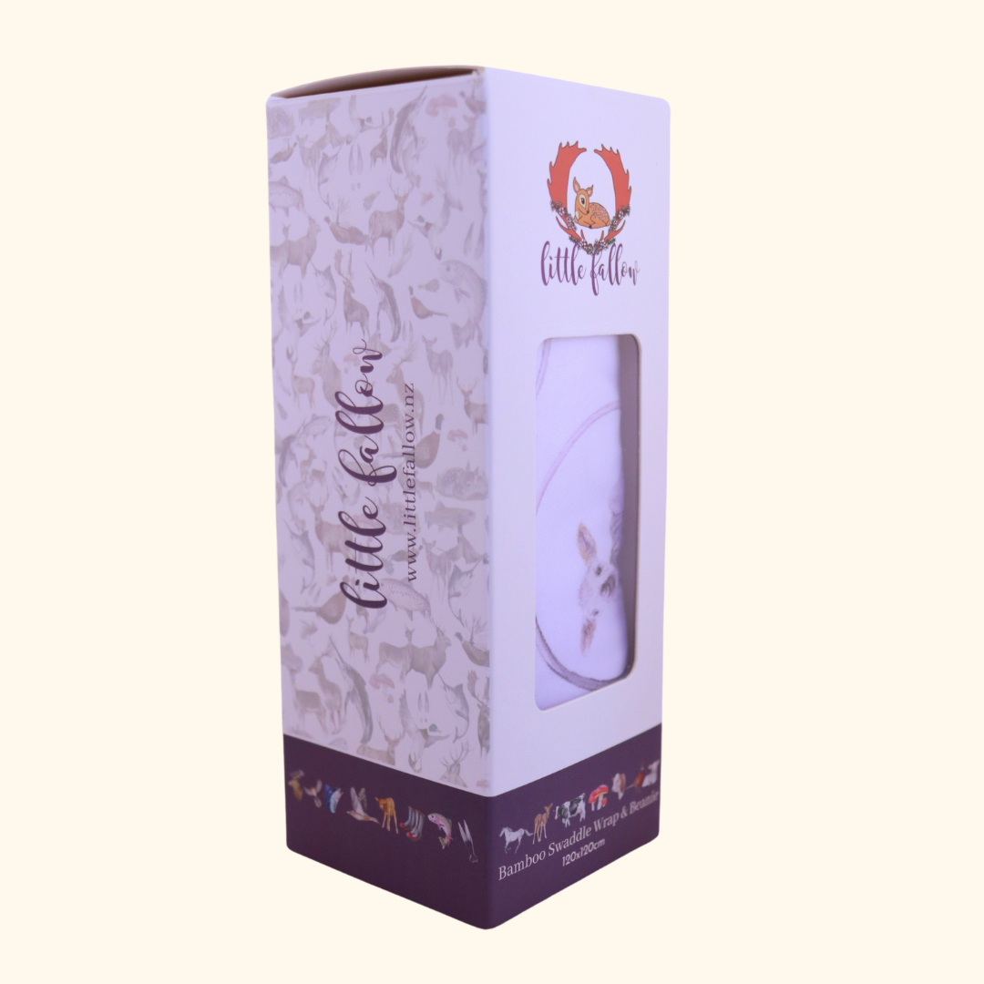Little Fallow's Bamboo Swaddle Wrap and Beanie set is the perfect gift.