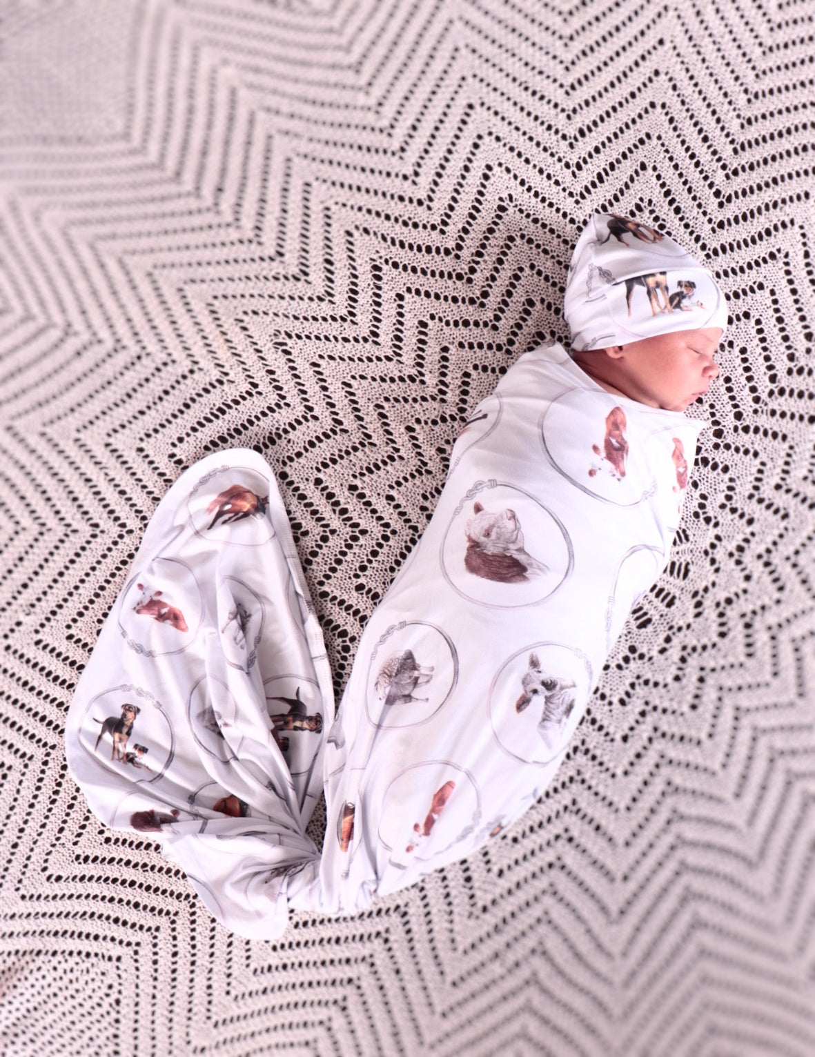 Sheep & Beef No8 Wire - Bamboo Swaddle Wrap + Beanie - White