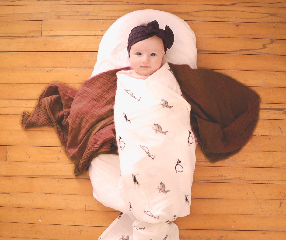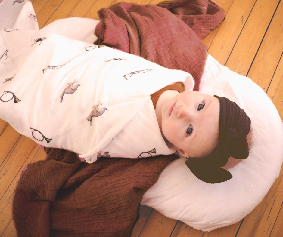 Crafted from a blend of 70% bamboo and 30% cotton muslin, our wraps are designed to be soft, durable, and versatile.