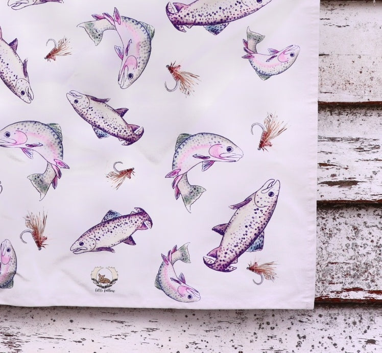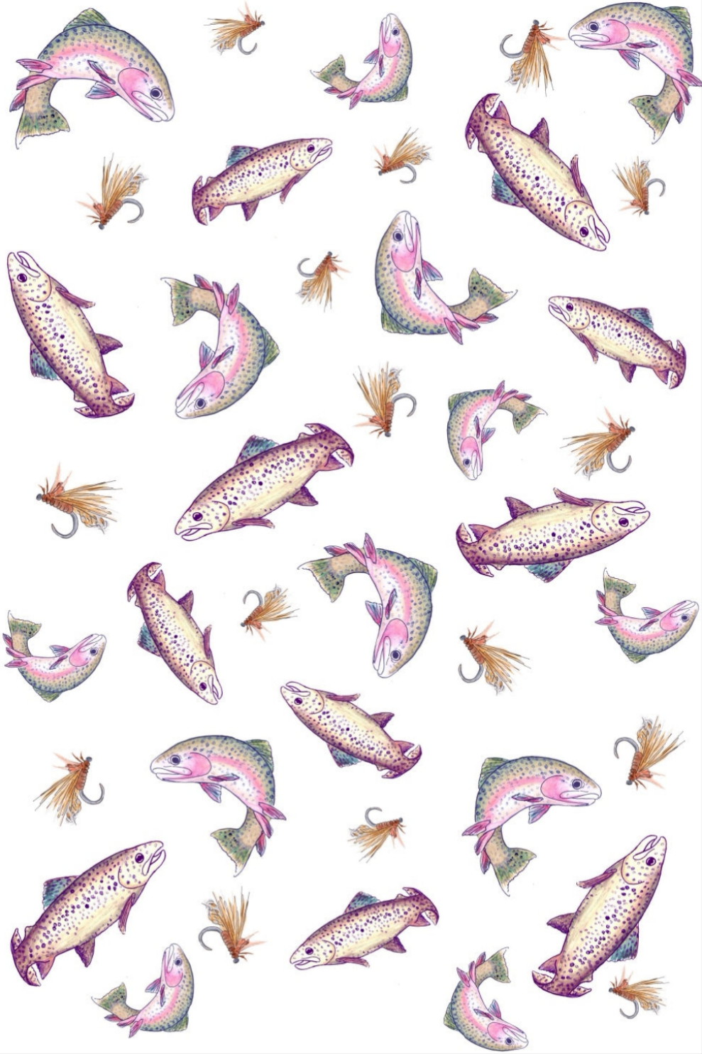 This gorgeous Trout Multi Print Tea Towel features a collection of watercolour painted Rainbow and Brown Trout and makes a regal addition to any kitchen.