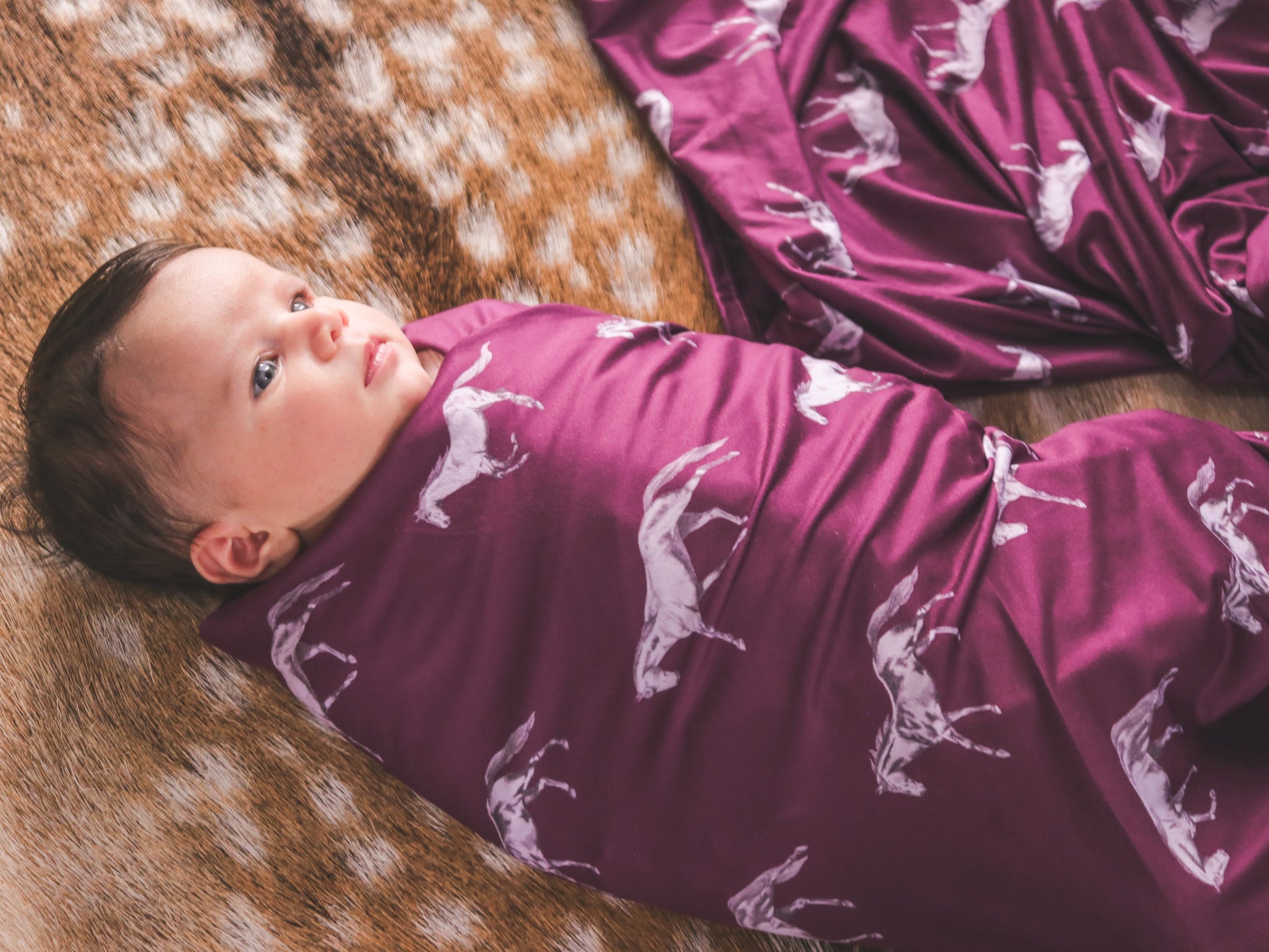 Vintage Horses - Bamboo Swaddle Wrap + Beanie - Fig