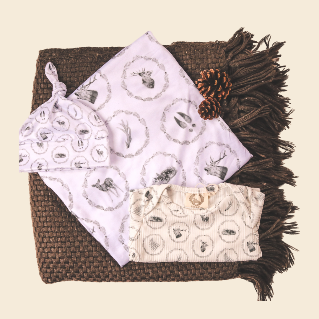 Little Fallow's Bamboo Swaddle Wrap and Beanie set is the perfect gift.