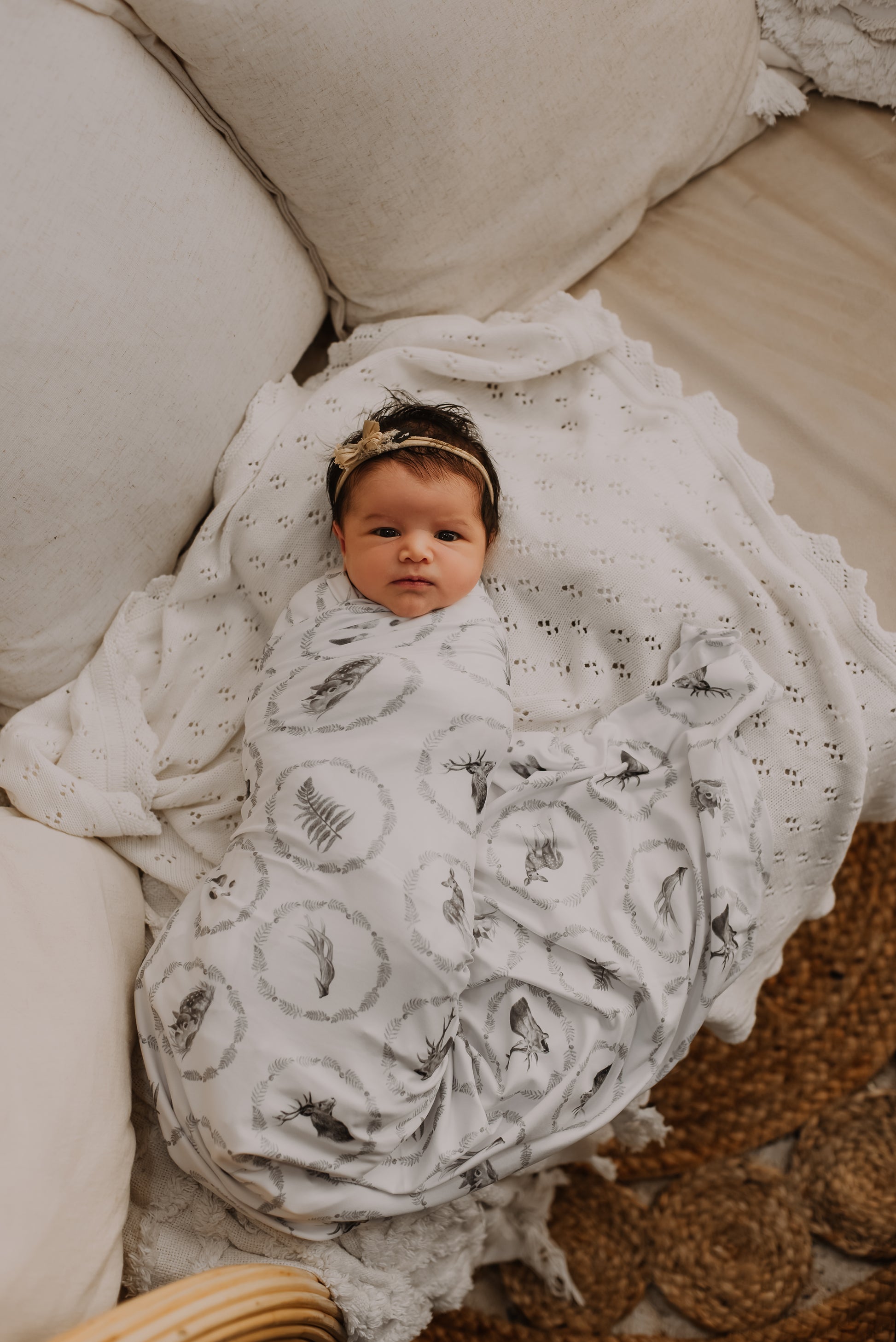 Whimsical - Bamboo Swaddle Wrap + Beanie - B&W