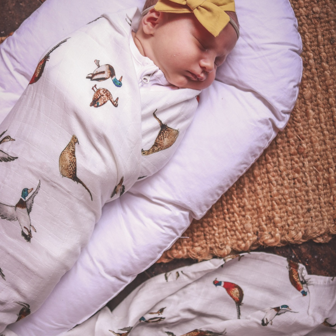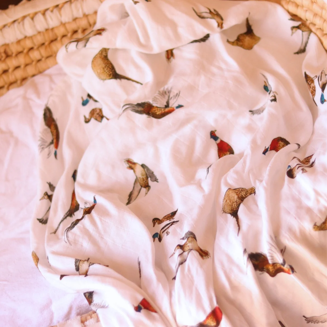 Pheasants & Ducks - Bamboo Muslin Wrap - White